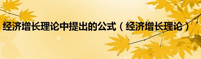 关于经济增长理论中提出的公式,经济增长理论这个很多人还不知道,今天菲菲来为大家解答以上的问题,现在让我们一起来看看吧!