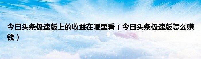 大家好,雨雨来为大家解答以上问题,今日头条极速版上的收益在哪里看,今日头条极速版怎么赚钱很多人还不知道,现在让我们一起来看看吧!