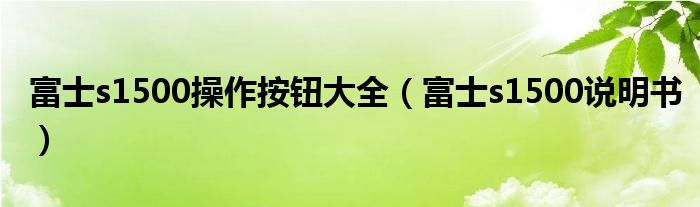 大家好,雨雨来为大家解答以上问题,富士s1500操作按钮大全,富士s1500说明书很多人还不知道,现在让我们一起来看看吧!