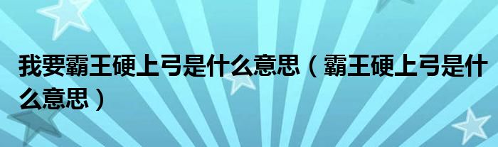 我要霸王硬上弓是什么意思,霸王硬上弓是什么意思这个很多人还不知道,小飞来为大家解答以上的问题。现在让我们一起来看看吧!