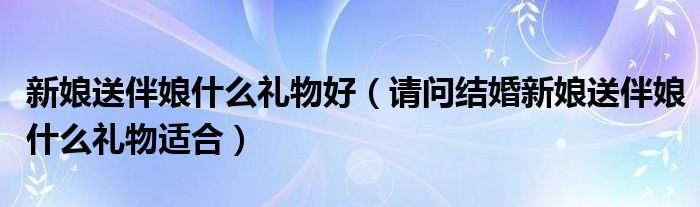 新娘送伴娘什么礼物好(请问结婚新娘送伴娘什么礼物适合)