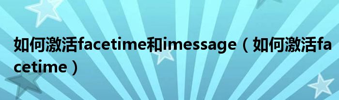 如何激活facetime和imessage(如何激活facetime)
