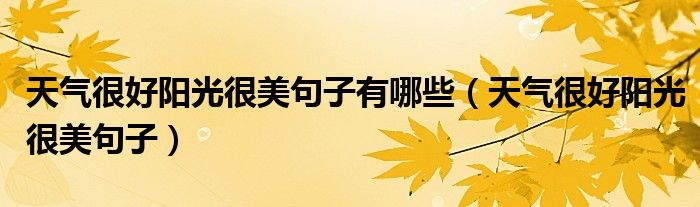 天气很好阳光很美句子有哪些,天气很好阳光很美句子很多人还不知道,乐乐来为大家解答以上问题,现在让我们一起来看看吧!