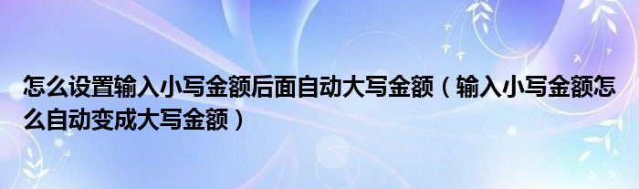 关于怎么设置输入小写金额后面自动大写金额,输入小写金额怎么自动变成大写金额这个很多人还不知道,今天菲菲来为大家解答以上的问题,现在让我们一起来看看吧!