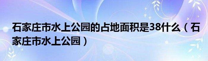 关于石家庄市水上公园的占地面积是38什么,石家庄市水上公园这个很多人还不知道,今天菲菲来为大家解答以上的问题,现在让我们一起来看看吧!