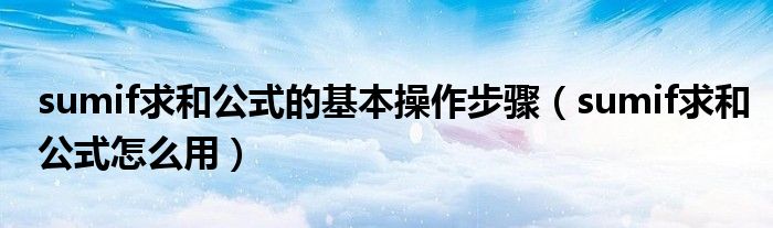 sumif求和公式的基本操作步骤(sumif求和公式怎么用)