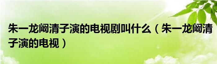 大家好,小晋来为大家解答以下问题,关于朱一龙阚清子演的电视剧叫什么,朱一龙阚清子演的电视很多人还不知道,今天让我们一起来看看吧!