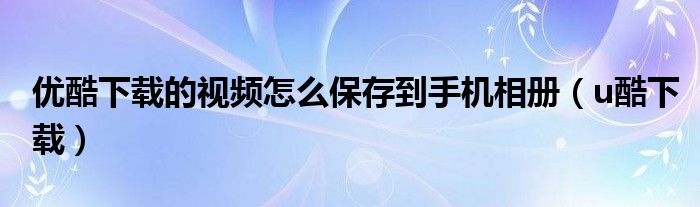 关于优酷下载的视频怎么保存到手机相册,u酷下载这个很多人还不知道,今天菲菲来为大家解答以上的问题,现在让我们一起来看看吧!