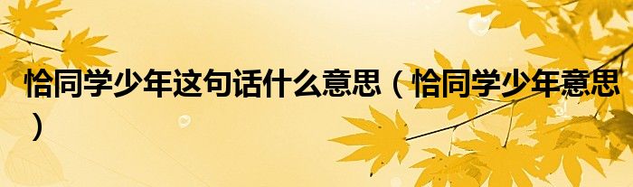 关于恰同学少年这句话什么意思,恰同学少年意思这个很多人还不知道,今天菲菲来为大家解答以上的问题,现在让我们一起来看看吧!