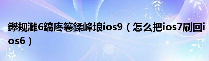 大家好,小飞来为大家解答以上问题,鑻规灉6鎬庝箞鍒峰埌ios9,怎么把ios7刷回ios6很多人还不知道,现在让我们一起来看看吧!