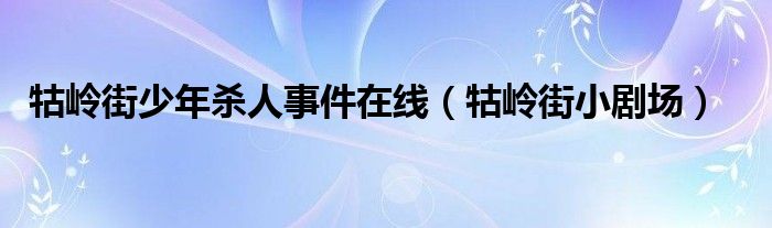 牯岭街少年杀人事件在线(牯岭街小剧场)