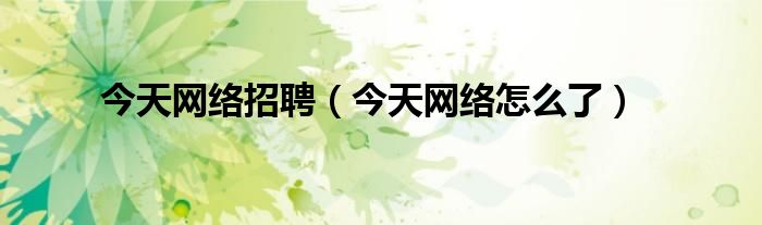 今天网络招聘,今天网络怎么了很多人还不知道,乐乐来为大家解答以上问题,现在让我们一起来看看吧!