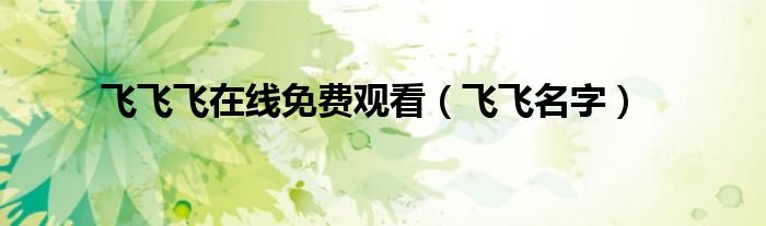 飞飞飞在线免费观看,飞飞名字很多人还不知道,乐乐来为大家解答以上问题,现在让我们一起来看看吧!