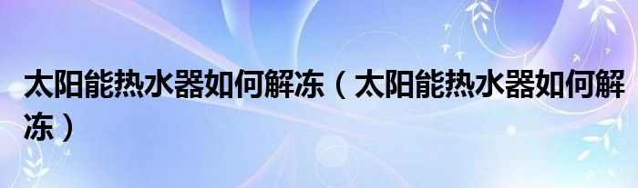 太阳能热水器如何解冻,太阳能热水器如何解冻这个很多人还不知道,小飞来为大家解答以上的问题。现在让我们一起来看看吧!