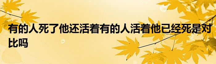 关于有的人死了他还活着有的人活着他已经死是对比吗这个很多人还不知道,今天菲菲来为大家解答以上的问题,现在让我们一起来看看吧!
