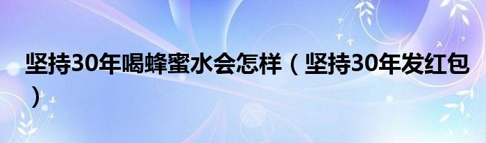 大家好,小飞来为大家解答以上问题,坚持30年喝蜂蜜水会怎样,坚持30年发红包很多人还不知道,现在让我们一起来看看吧!