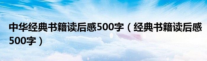 关于中华经典书籍读后感500字,经典书籍读后感500字这个很多人还不知道,今天菲菲来为大家解答以上的问题,现在让我们一起来看看吧!