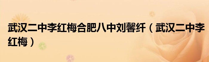武汉二中李红梅合肥八中刘馨纤,武汉二中李红梅这个很多人还不知道,小飞来为大家解答以上的问题。现在让我们一起来看看吧!
