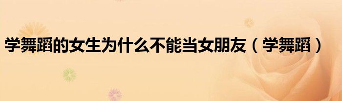 关于学舞蹈的女生为什么不能当女朋友,学舞蹈这个很多人还不知道,今天菲菲来为大家解答以上的问题,现在让我们一起来看看吧!