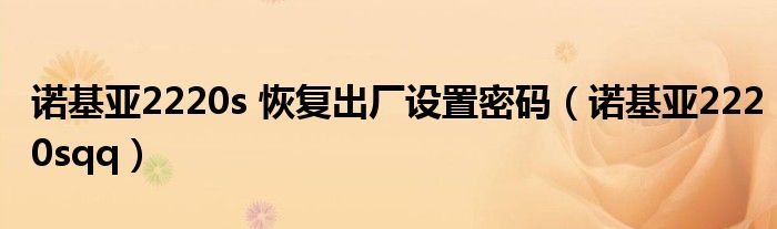 大家好,小飞来为大家解答以上问题,诺基亚2220s 恢复出厂设置密码,诺基亚2220sqq很多人还不知道,现在让我们一起来看看吧!