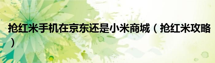 大家好,小飞来为大家解答以上问题,抢红米手机在京东还是小米商城,抢红米攻略很多人还不知道,现在让我们一起来看看吧!