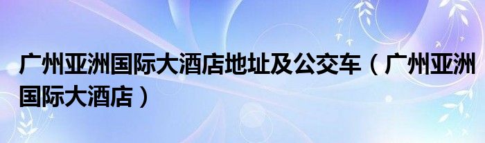 关于广州亚洲国际大酒店地址及公交车,广州亚洲国际大酒店这个很多人还不知道,今天菲菲来为大家解答以上的问题,现在让我们一起来看看吧!