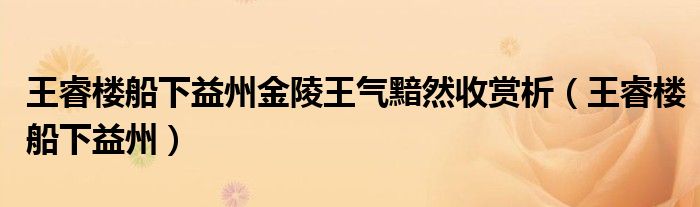 关于王睿楼船下益州金陵王气黯然收赏析,王睿楼船下益州这个很多人还不知道,今天菲菲来为大家解答以上的问题,现在让我们一起来看看吧!