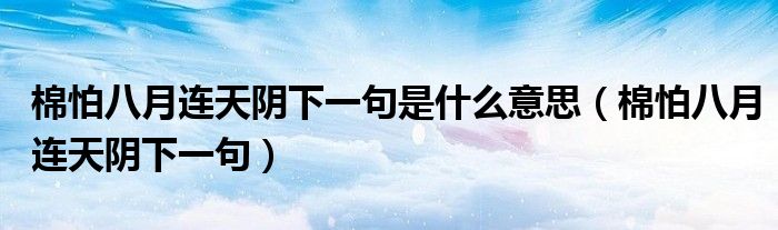 大家好,小晋来为大家解答以下问题,关于棉怕八月连天阴下一句是什么意思,棉怕八月连天阴下一句很多人还不知道,今天让我们一起来看看吧!