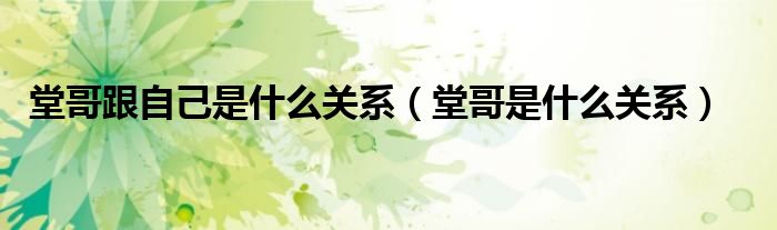 关于堂哥跟自己是什么关系,堂哥是什么关系这个很多人还不知道,今天菲菲来为大家解答以上的问题,现在让我们一起来看看吧!
