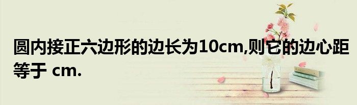 关于圆内接正六边形的边长为10cm,则它的边心距等于 cm.这个很多人还不知道,今天菲菲来为大家解答以上的问题,现在让我们一起来看看吧!