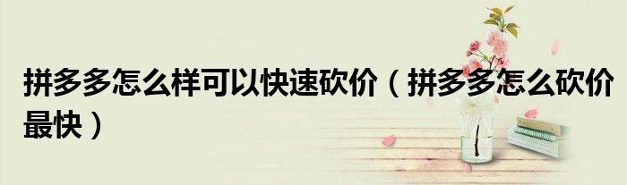 大家好,小晋来为大家解答以下问题,关于拼多多怎么样可以快速砍价,拼多多怎么砍价最快很多人还不知道,今天让我们一起来看看吧!