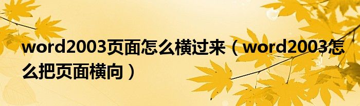 word2003页面怎么横过来(word2003怎么把页面横向)