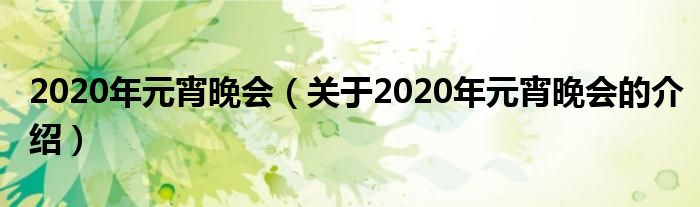 大家好,今天小乐来为大家解答以上的问题。2020年元宵晚会,关于2020年元宵晚会的介绍很多人还不知道,现在让我们一起来看看吧!