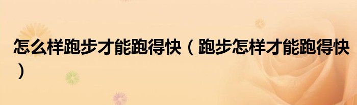 关于怎么样跑步才能跑得快,跑步怎样才能跑得快这个很多人还不知道,今天菲菲来为大家解答以上的问题,现在让我们一起来看看吧!