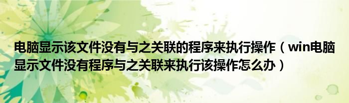 电脑显示该文件没有与之关联的程序来执行操作(win电脑显示文件没有程序与之关联来执行该操作怎么办)