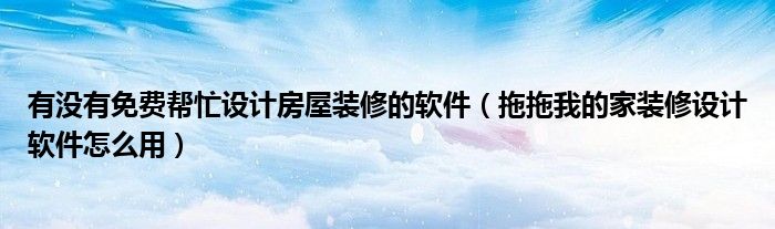 大家好,今天小悦来为大家解答以上问题。有没有免费帮忙设计房屋装修的软件,拖拖我的家装修设计软件怎么用很多人还不知道,现在让我们一起来看看吧!
