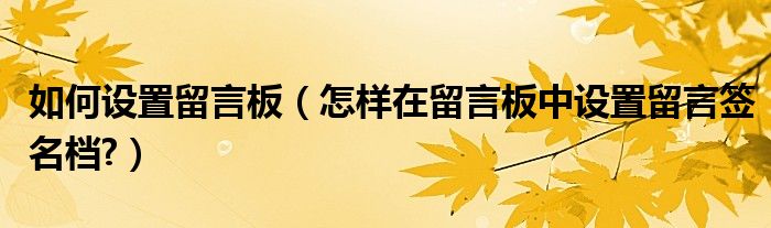 大家好,今天小悦来为大家解答以上问题。如何设置留言板,怎样在留言板中设置留言签名档?很多人还不知道,现在让我们一起来看看吧!