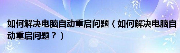 大家好,小太来为大家解答以上问题。如何解决电脑自动重启问题,如何解决电脑自动重启问题?很多人还不知道,现在让我们一起来看看吧!