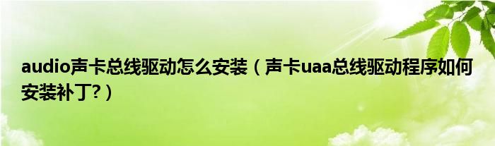 Microsoft UAA (Microsoft Universal Audio xtcchitecture)总线驱动是微软对高清音频标准HD Audio 总线(High Definition Audio)的系统级支持驱动。新的HD声卡驱动和Modem区动都是基于HD Audio总线开 发的,如果用户使用其他系统安装光盘来安装,并且隐藏分区受到破坏情况下,有可能遇到此问题。可以建议 用户先?苏夜馀躺鲜欠裼?b888111补丁(对于不同的声卡,kb888111补丁程序是通用的),安装补丁后重新 安?声卡驱动即可。此补丁是2006年发布,不在SP2补丁包内。但是随机的系统光盘一般会集成一些最新的补丁。