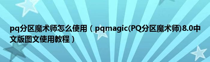 大家好,小太来为大家解答以上问题。pq分区魔术师怎么使用,pqmagic(PQ分区魔术师)8.0中文版图文使用教程很多人还不知道,现在让我们一起来看看吧!