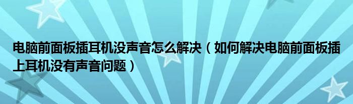 大家好,小太来为大家解答以上问题。电脑前面板插耳机没声音怎么解决,如何解决电脑前面板插上耳机没有声音问题很多人还不知道,现在让我们一起来看看吧!