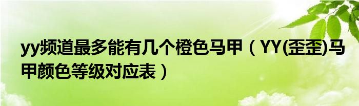 大家好,小太来为大家解答以上问题。yy频道最多能有几个橙色马甲,YY(歪歪)马甲颜色等级对应表很多人还不知道,现在让我们一起来看看吧!