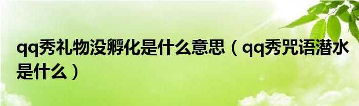 大家好,小太来为大家解答以上问题。qq秀礼物没孵化是什么意思,qq秀咒语潜水是什么很多人还不知道,现在让我们一起来看看吧!