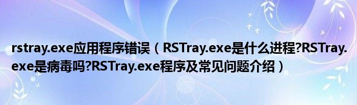 大家好,小太来为大家解答以上问题。rstray.exe应用程序错误,RSTray.exe是什么进程?RSTray.exe是病毒吗?RSTray.exe程序及常见问题介绍很多人还不知道,现在让我们一起来看看吧!