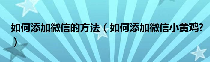 大家好,小太来为大家解答以上问题。如何添加微信的方法,如何添加微信小黄鸡?很多人还不知道,现在让我们一起来看看吧!