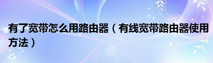大家好,小太来为大家解答以上问题。有了宽带怎么用路由器,有线宽带路由器使用方法很多人还不知道,现在让我们一起来看看吧!