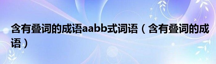 大家好,小晋来为大家解答以下问题,关于含有叠词的成语aabb式词语,含有叠词的成语很多人还不知道,今天让我们一起来看看吧!