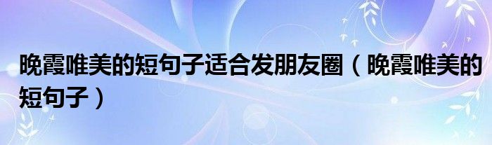 大家好,雨雨来为大家解答以上问题,晚霞唯美的短句子适合发朋友圈,晚霞唯美的短句子很多人还不知道,现在让我们一起来看看吧!