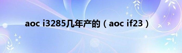 大家好,雨雨来为大家解答以上问题,aoc i3285几年产的,aoc if23很多人还不知道,现在让我们一起来看看吧!