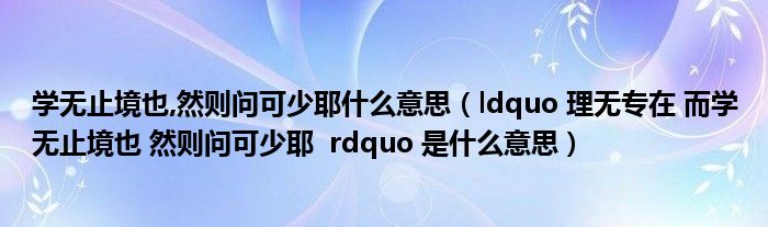 学无止境也,然则问可少耶什么意思(ldquo 理无专在 而学无止境也 然则问可少耶 rdquo 是什么意思)